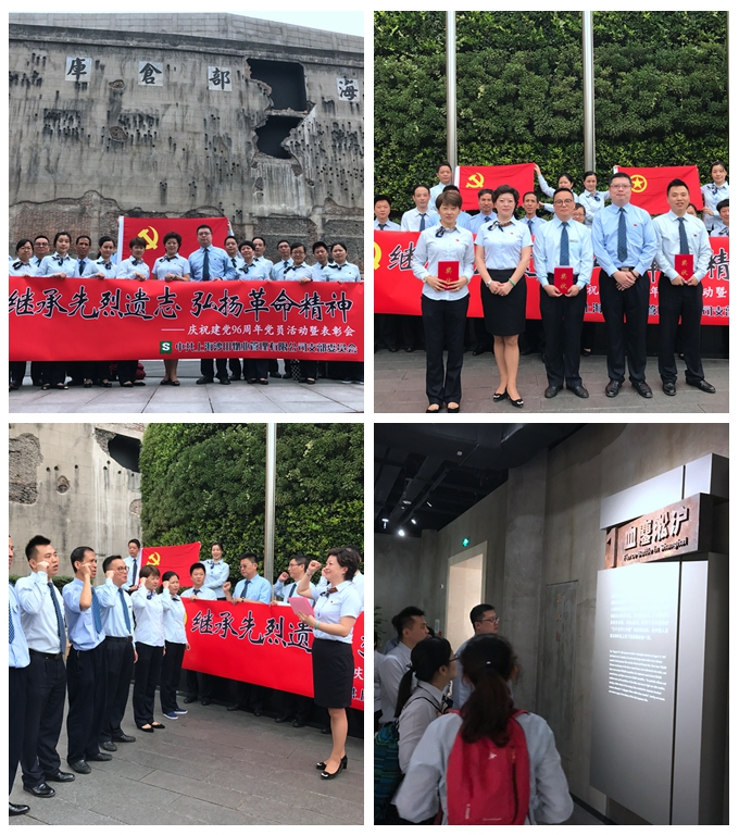 2017年6月29日,沙田物業(yè)黨支部組織開展的“慶祝中國共產(chǎn)黨建黨96周年黨員活動(dòng)日暨先進(jìn)黨員表彰會(huì)”在上海四行倉庫抗戰(zhàn)紀(jì)念地晉元紀(jì)念廣場隆重舉行,這是公司黨支部第一次組織全體黨員和公司年輕骨干在革命歷史遺址開展的別開生面的黨員交流活動(dòng)。在活動(dòng)中,黨支部書記、組織委員、宣傳委 員先后發(fā)言,三位2017優(yōu)秀共產(chǎn)黨員也在接受表彰后進(jìn)行了演講,并由黨支部書記趙小鳳帶領(lǐng)大家在“四行倉庫”彈孔累累的墻面下舉行了莊嚴(yán)的宣誓儀式?!耙蛔鶄}庫,因?yàn)橛⑿鄣膱?jiān)守,而成為民族永恒的豐碑。一場戰(zhàn)斗,因?yàn)橄容叺臒嵫?,而成為民族永恒的記憶?!痹趨⒂^“八百壯士四行倉庫抗日紀(jì)念館”進(jìn)入尾聲的時(shí)候,大家站在這段“結(jié)語”之前,讀著墻上的文字,感受的革命歷程的艱辛與革命先烈英勇抗戰(zhàn)的壯志激情。表達(dá)著共同的心聲“不忘初心,砥礪奮進(jìn)”爭當(dāng)“兩學(xué)一做”的標(biāo)兵,為沙田的明天作貢獻(xiàn)。