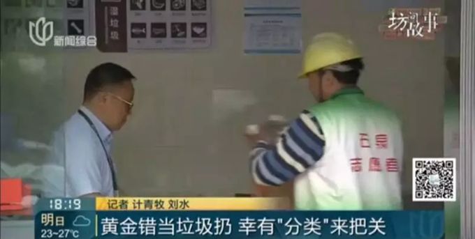 6月29日,負(fù)責(zé)小區(qū)垃圾清運(yùn)的荀師傅在對可回收垃圾進(jìn)行分揀的過程中意外發(fā)現(xiàn)一塑料小包,打開發(fā)現(xiàn)是黃金飾品共計18件以及黃金飾件的發(fā)票,在確認(rèn)是真金后,荀師傅立即向小區(qū)經(jīng)理薛寶國(第三屆上海最美物業(yè)人候選人)匯報,薛經(jīng)理當(dāng)即向居委會反映了具體情況。