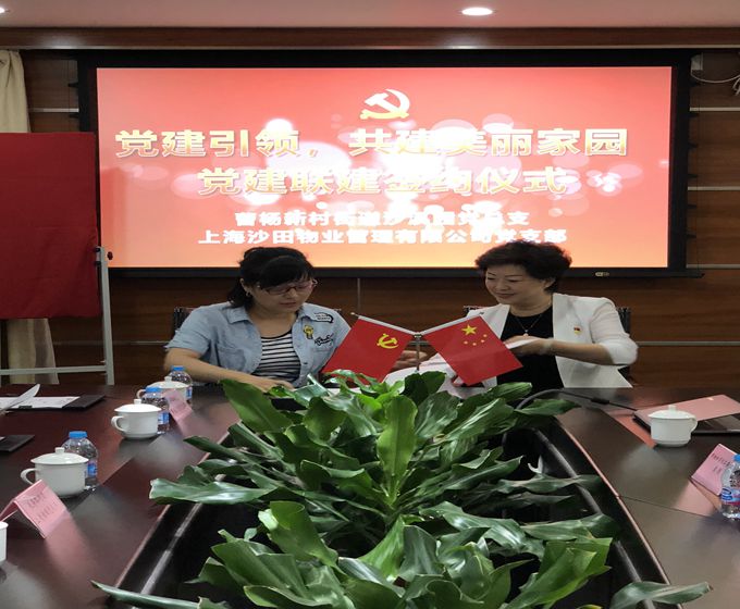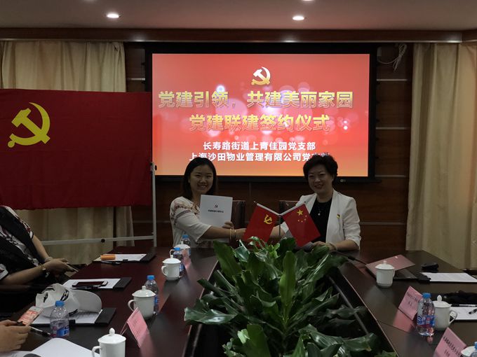 2018年6月28日,由市物業(yè)協(xié)會黨建工作指導(dǎo)委員會普陀分會和沙田物業(yè)聯(lián)合舉辦的“黨建引領(lǐng)共建美麗家園,迎七一黨建聯(lián)建工作推進(jìn)會暨共建協(xié)議簽約儀式”在沙田物業(yè)公司總部舉行。長壽路街道黨建辦、長壽路街道九茂黨總支、長壽路街道芙蓉花苑黨支部、長壽路街道上青佳園黨支部、曹楊新村街道沙溪園黨總支出席本次會議,沙田物業(yè)黨支部、公司職能部門參會。